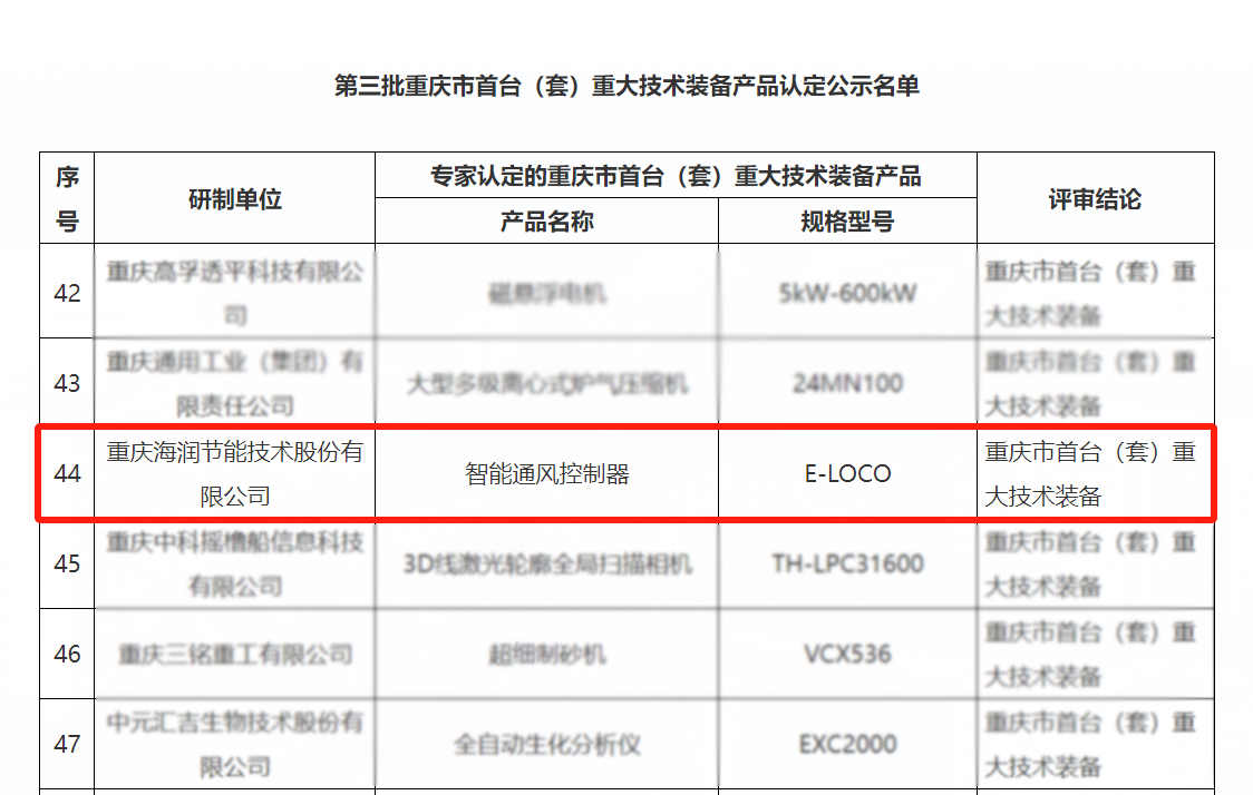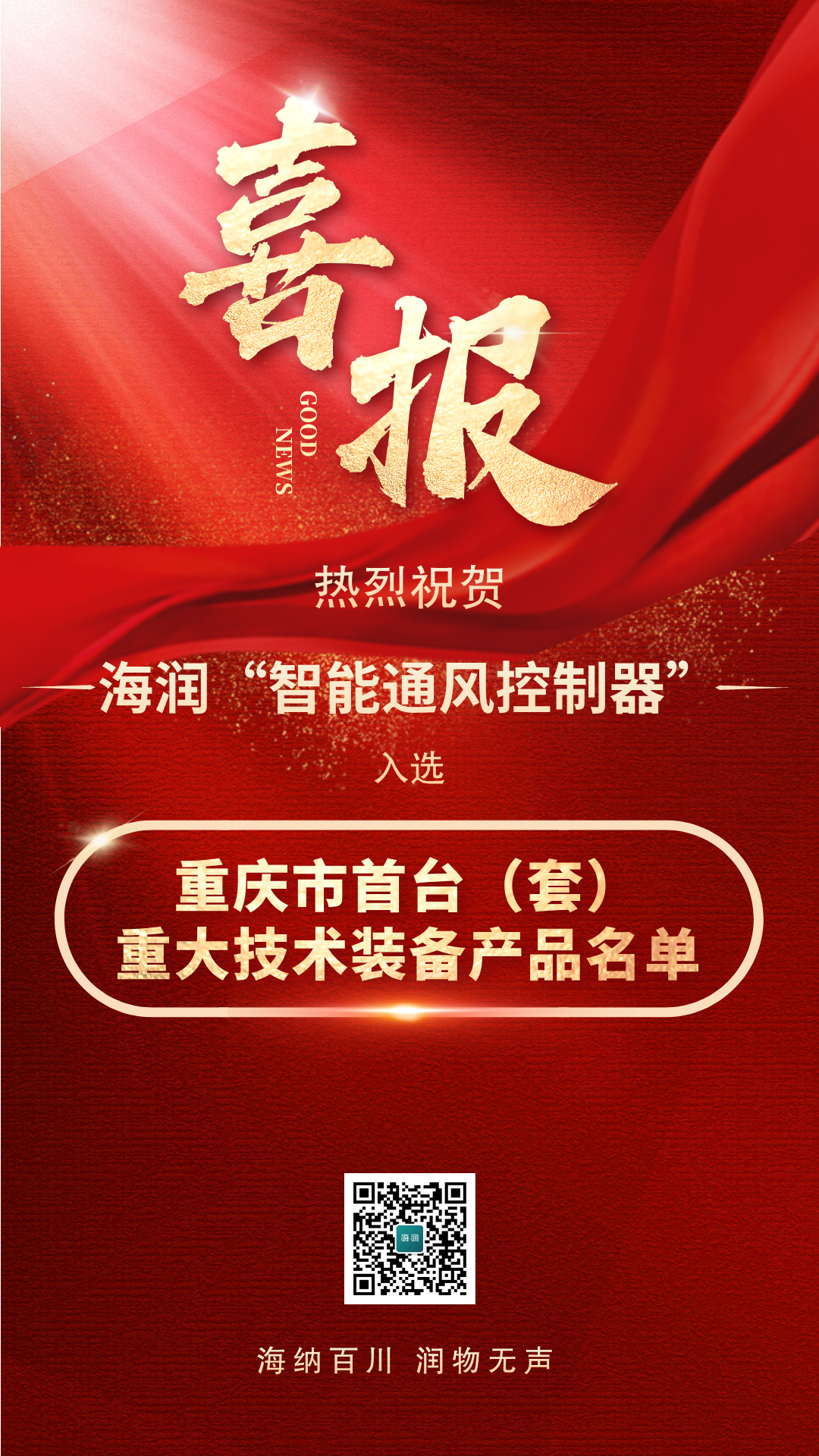 喜报 | 海润“智能通风控制器”入选重庆市首台(套)重大技术装备产品名单