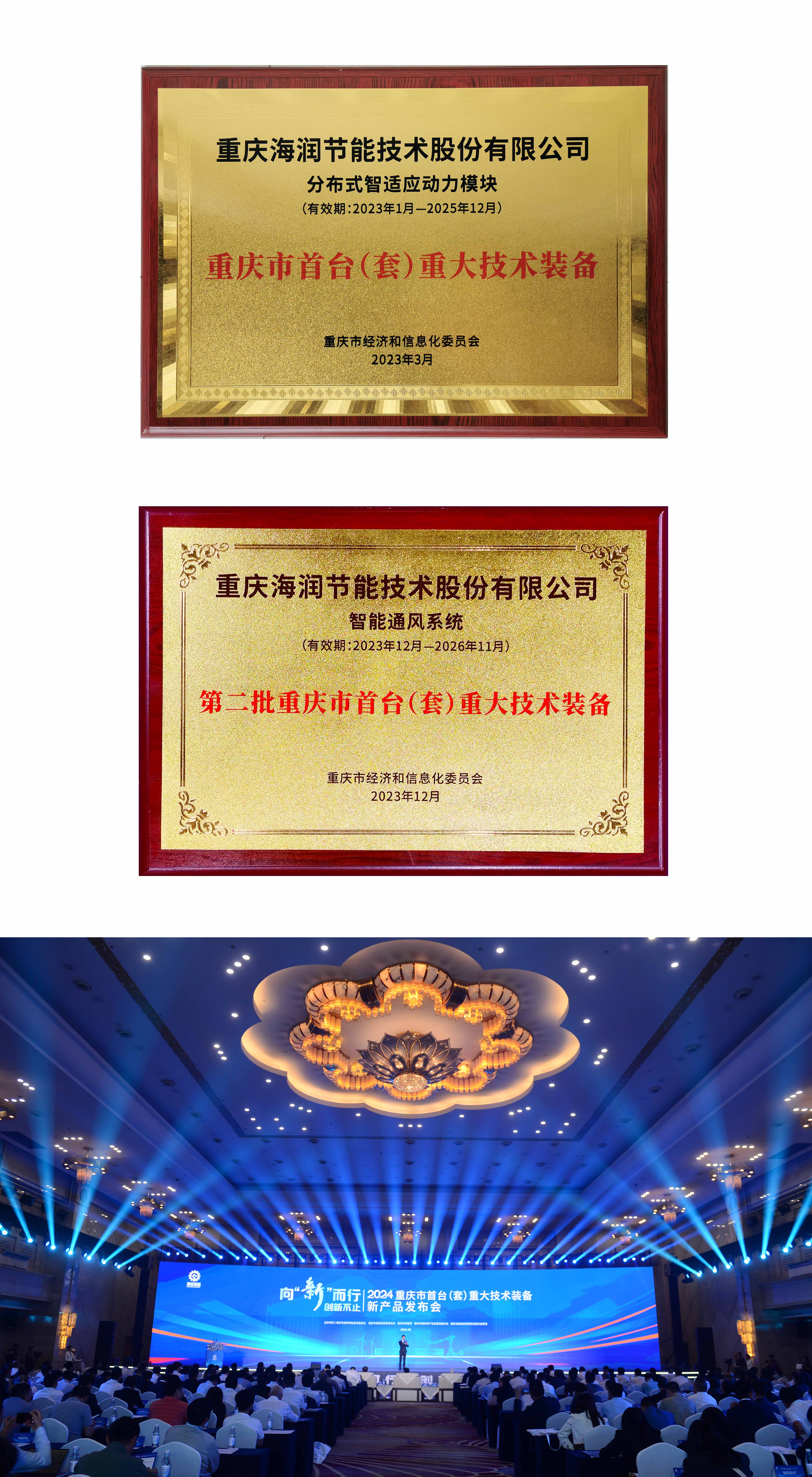 2023年,海润“智能通风系统”被认定为第二批重庆市首台(套)重大技术装备产品。